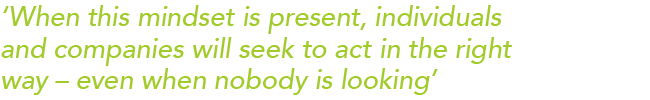 The construction firm that uses inferior building materials is just as guilty of unethical behaviour as the business owner who pays bribes to secure a tender, or the large corporation committing accounting fraud to deceive its financiers and shareholders. Good corporate governance is intrinsically linked to an ethical culture.