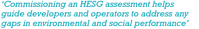 ‘Commissioning an HESG assessment helps guide developers and operators to address any gaps in environmental and social performance. Going through this process will ultimately demonstrate a project’s sustainability and help unlock green finance.’