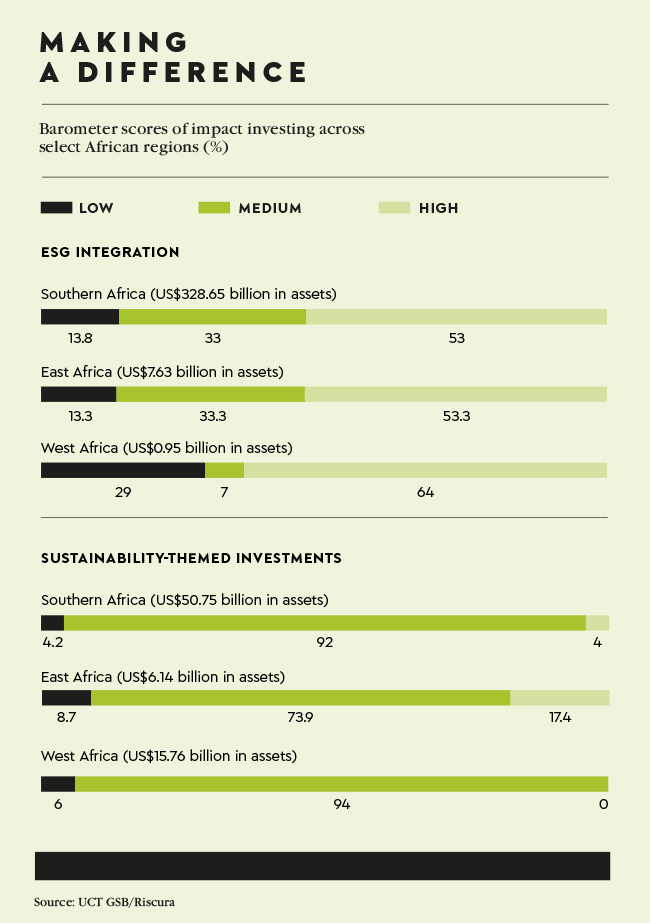 ‘The growth of impact investing and sustainability-themed investment strategies is heavily dependent on decisions taken by market makers such as financial regulatory bodies and also political forces,’ according to Stephanie Giamporcaro, an associate professor at the GSB and in charge of the African Investing for Impact Barometer.