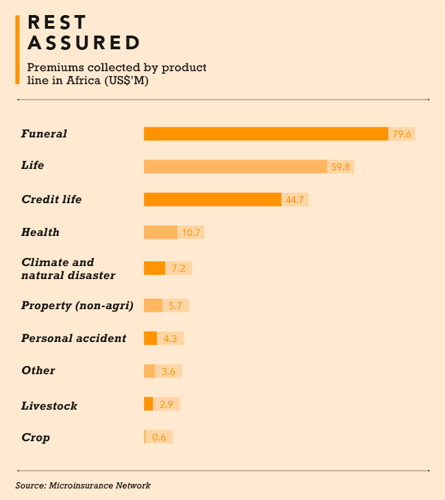 ‘This high funeral-insurance penetration is not observed elsewhere on the continent, where both lower levels of access to funeral parlours and providers of funeral-insurance products, as well as different cultural beliefs and practices around burials and death, lead to lower uptake,’ he says.