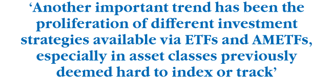 ‘A noticeable trend in 2024 has been the range of new players that have entered the ETF industry in South Africa – both management companies (issuers, providers) as well as asset managers,’ she says. ‘Another important trend has been the proliferation of different investment strategies available via ETFs and AMETFs, especially in asset classes previously deemed hard to index or track. This is particularly noticeable in the interest-bearing/bond/income space where there has been a sharp increase in range and diversification.’