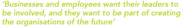 According to Jackie Launder, executive partner at Mindcor, a talent consulting, executive search and recruitment firm: ‘Requirements such as having an executive presence, agility, authenticity, integrity, availability and accessibility, and not leading by proxy are becoming more important. Businesses and employees want their leaders to be involved, and they want to be part of creating the organisations of the future.’