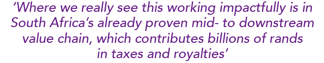 ‘The implication is that there is room for growth and space for domestically produced crude oil. In terms of gas, the nation also has fairly low local production so we’ve become somewhat dependent on what we can import from Mozambique. While the gas market is not as appealing as that for crude oil, any large gas resources would really open up local markets for electricity generation or the production of various refined petroleum products,’ she says. ‘Where we really see this working impactfully is in South Africa’s already proven mid- to downstream value chain, which contributes billions of rands in taxes and royalties, through activities inclusive of refineries, storage, distribution and retailing stations, the latter estimated to be in excess of 4 500.’