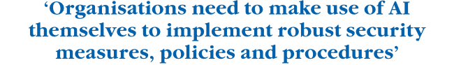 However, Prasad cautions against over-reliance on AI to save the day. ‘AI is a powerful tool, but relying too heavily on it can lead to a false sense of security, blinding organisations to security threats and unwanted activities occurring on their networks,’ he warns. ‘In addition, AI is only as reliable as the data on which it is built. If the data sets used to train AI are biased and/ or incomplete, then the intelligence will be biased and/or incomplete as a result. AI systems also need to be protected from data breaches and malicious actors who could use the data to leverage an attack.’