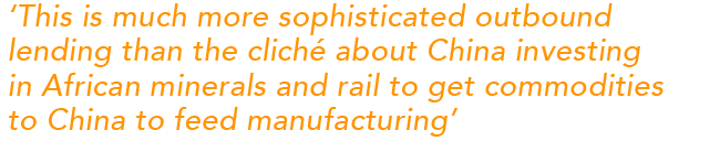 These numbers parallel global trends with the worldwide figure being down 23% for 2017. Interest in Africa was badly hit by the commodities slowdown after 2014. Within this pattern, however, there has been an increase in the flow of funding from China to Africa. Whyte says there is a clear shift in Chinese lending towards the power sector. ‘This is much more sophisticated outbound lending than the cliché about China investing in African minerals and rail to get commodities to China to feed manufacturing,’ he says.