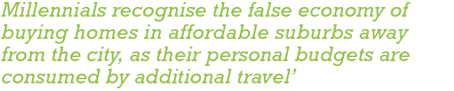 ‘Millennials recognise the false economy of buying homes in affordable suburbs away from the city, as their personal budgets are consumed by additional travel, maintenance and security costs.’