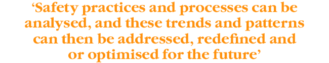 ‘Safety practices and processes can be analysed, and these trends and patterns can then be addressed, redefined and or optimised for the future.’ He adds that data itself presents new opportunities for revenue generating, and ‘blue-sky’ thinking and problem-solving.